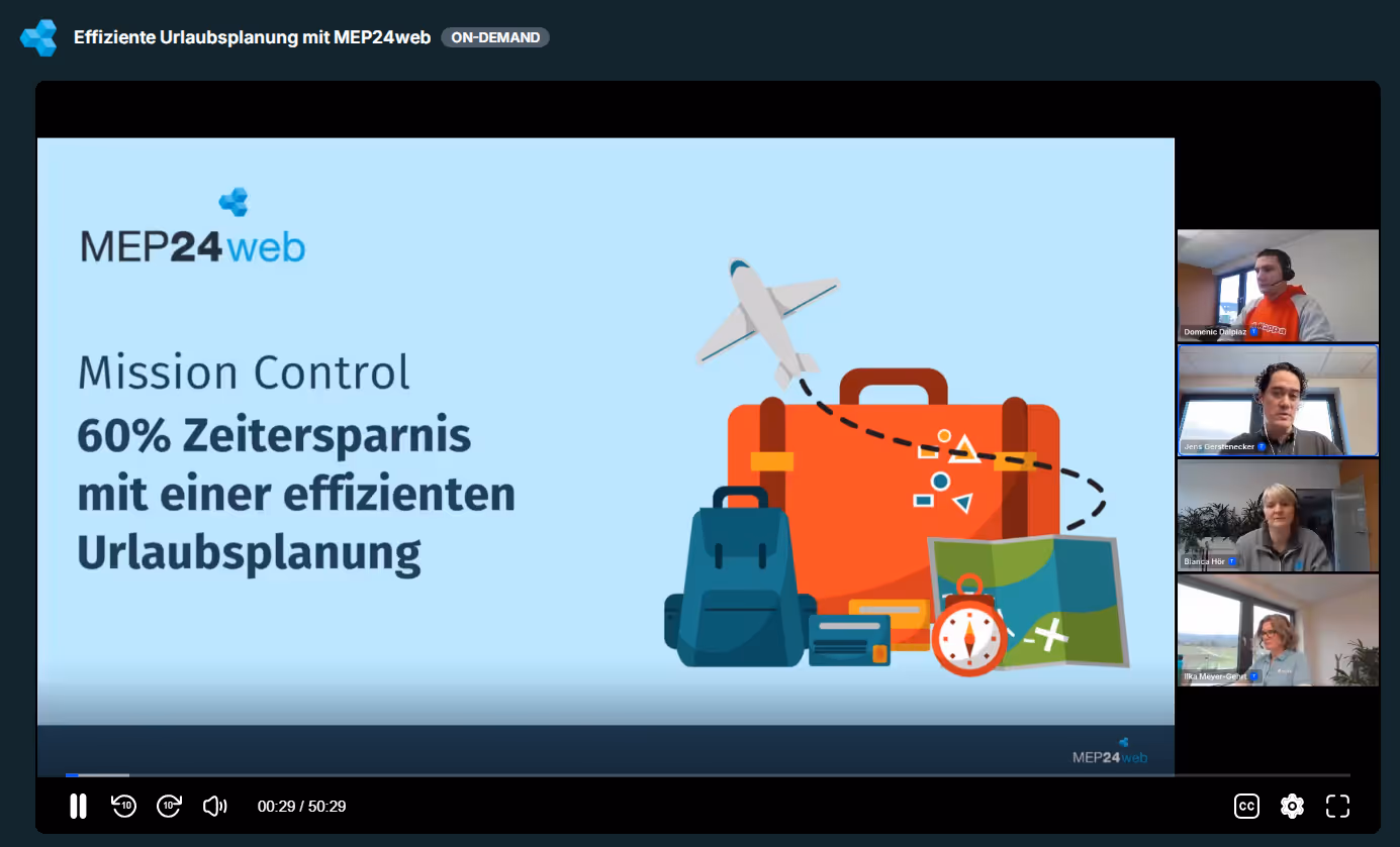 Erfolgreiche Webinar-Reihe von MEP24web: Einblicke und Praxisbeispiele zum Thema „Urlaub und andere Fehlzeiten“