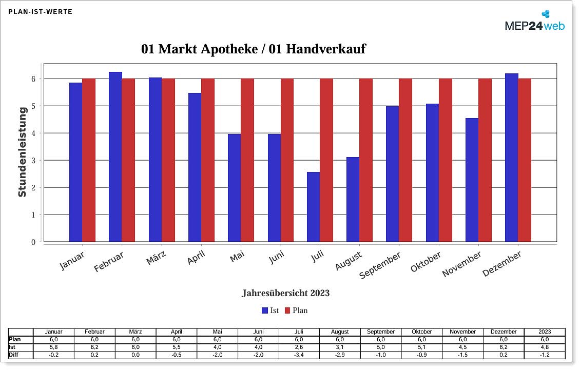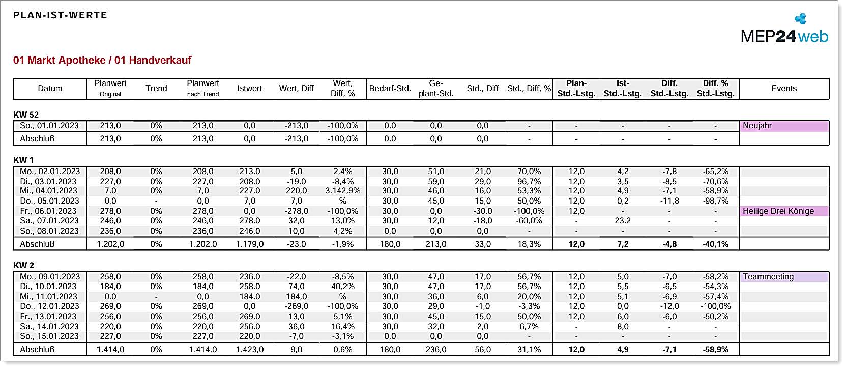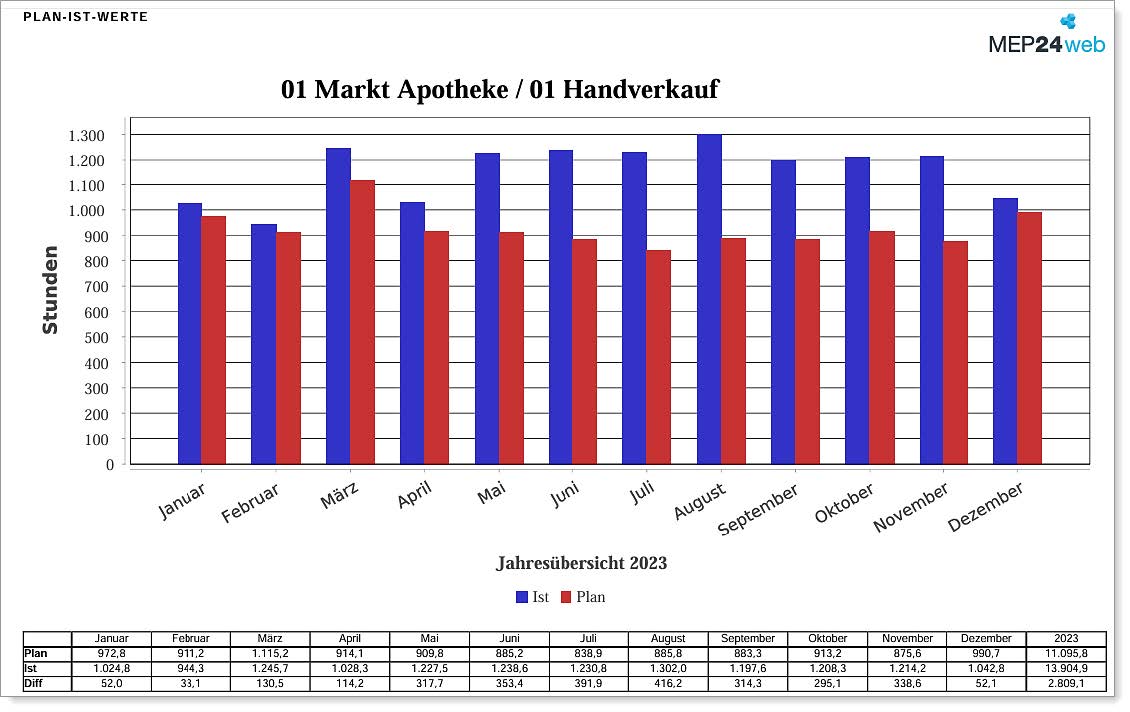 Berichte in MEP24web – Teil 8, Auswertung: Plan-Ist-Werte