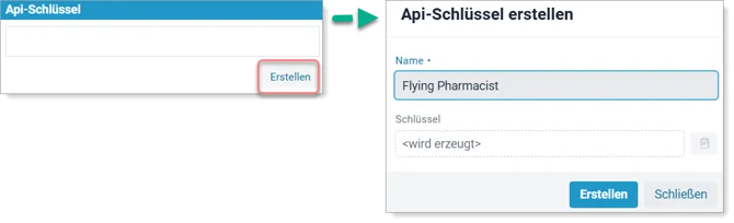 Bitte senden Sie den eben generierten API-Schlüssel per E-Mail an Ihren Ansprechpartner bei Flying Pharmacist.