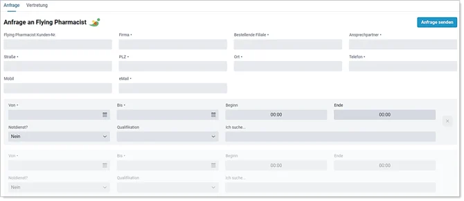 - Klicken Sie links im Menü auf Flying Pharmacist, um die Anfrageseite zu öffnen.