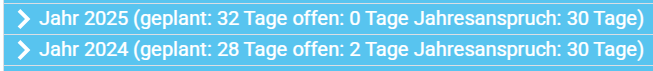 In MEP24web wird offener Resturlaub automatisch in das nächste Kalenderjahr mit übertragen. Er erhöht somit den insgesamt offenen Urlaubsanspruch.
