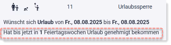 Es wird Ihnen die Anzahl der bereits genehmigten Urlaube in einer Feiertagswoche angezeigt.