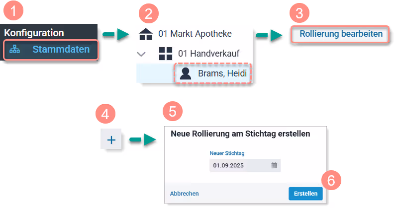 Es öffnet sich ein neues Fenster „Neue Rollierung am Stichtag erstellen“. - Datum unter Neuer Stichtag eingeben.