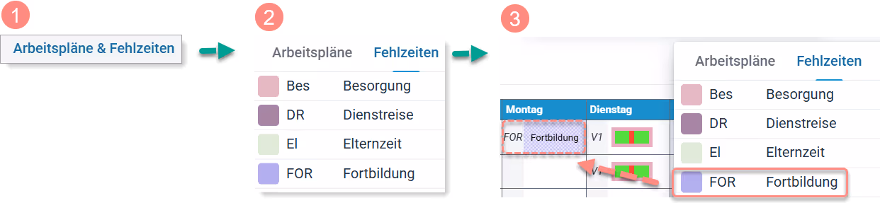 Fehlzeiten (ganztägig oder stundenweise) in der Rollierung planen