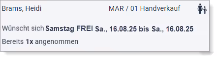 Bei einer Ablehnung eines Mitarbeiterwunsches für „Urlaub“ soll der nächstmögliche alternative Zeitraum angezeigt werden.